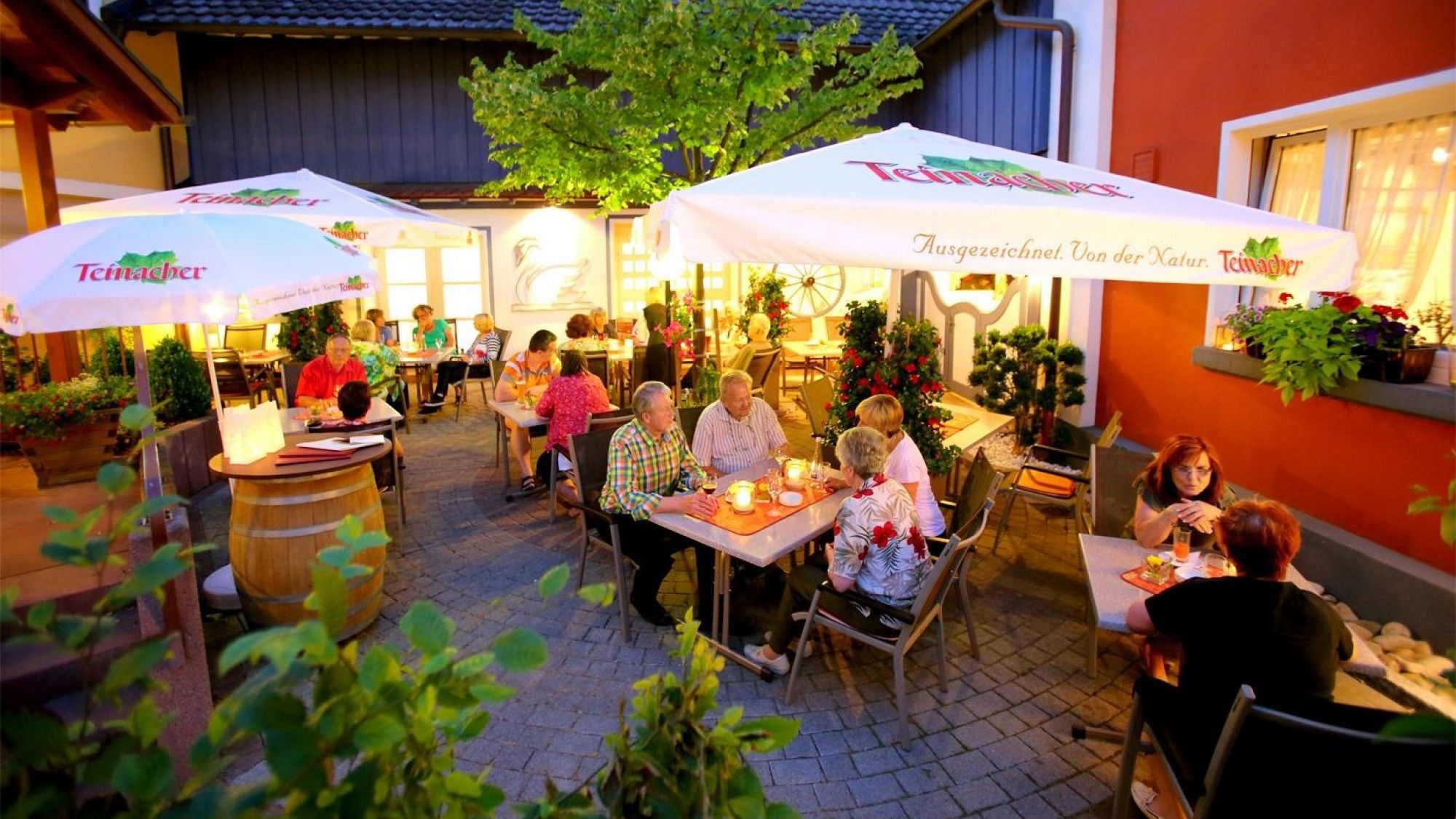 Bei schönem Wetter begrüßen wir unsere Gäste auch gerne in unserer gemütlichen Gartenwirtschaft. Windgeschütz in unserem Innenhof gelegen ist dies der perfekte Ort um laue Sommernächte und warme Herbsttage zu genießen.