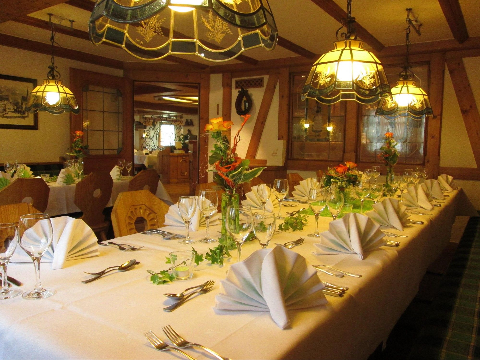Gerne sind wir auch Ihr Ansprechpartner für Veranstaltungen wie Geburtstagsfeste, Betriebsfeiern oder Tagungen. Wir verfügen über Räume für Gesellschaften bis zu 25 und bis zu 70 Personen. Durch den nahegelegenen Busparkplatz sind wir mit unserem Restaurant auch der passende Ort für organisierte Bustouren.